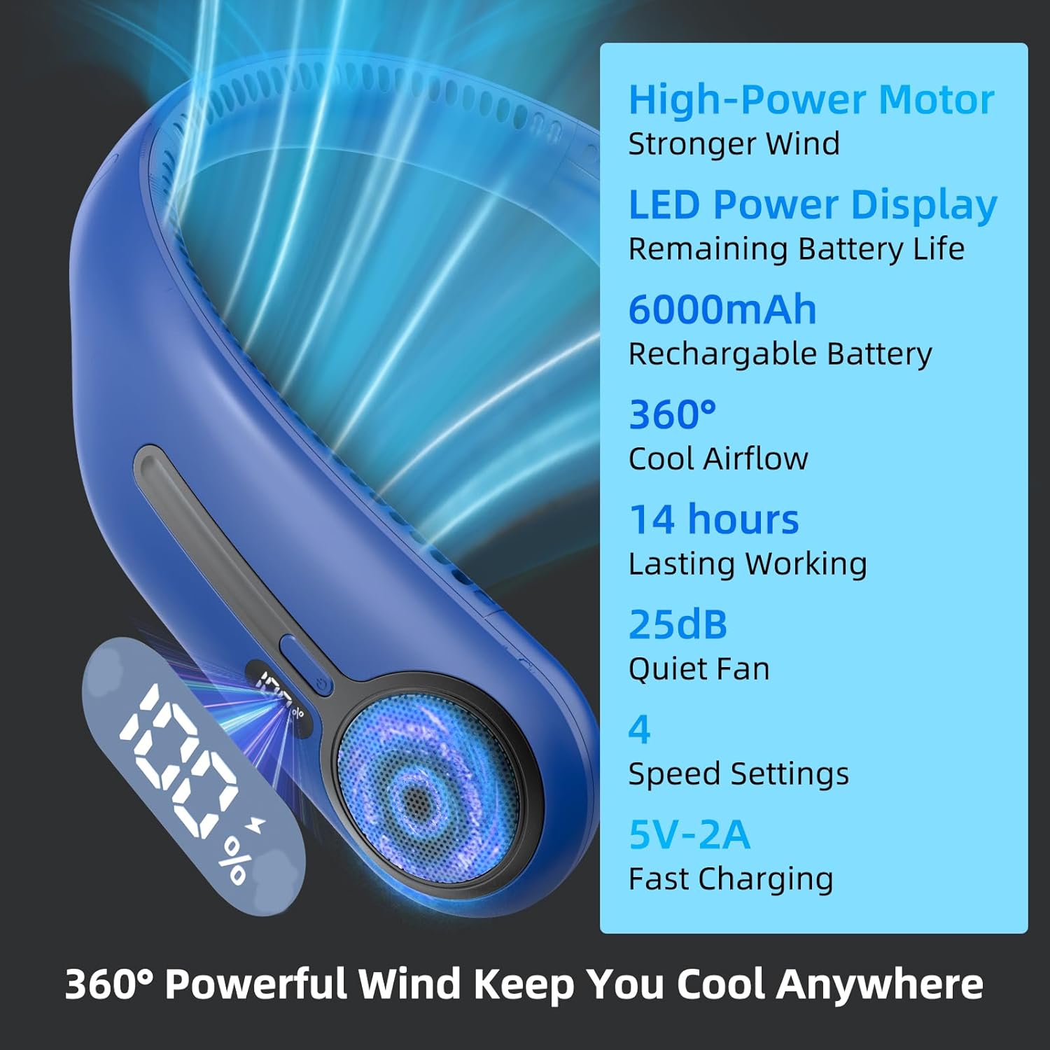 【Upgraded Cooling Performance】: Our neck fan has two high-power motor, delivering a 360° powerful airflow that cools your neck and face instantly. The upgraded air volume is 150% stronger, ensuring rapid cooling even in extreme heat.