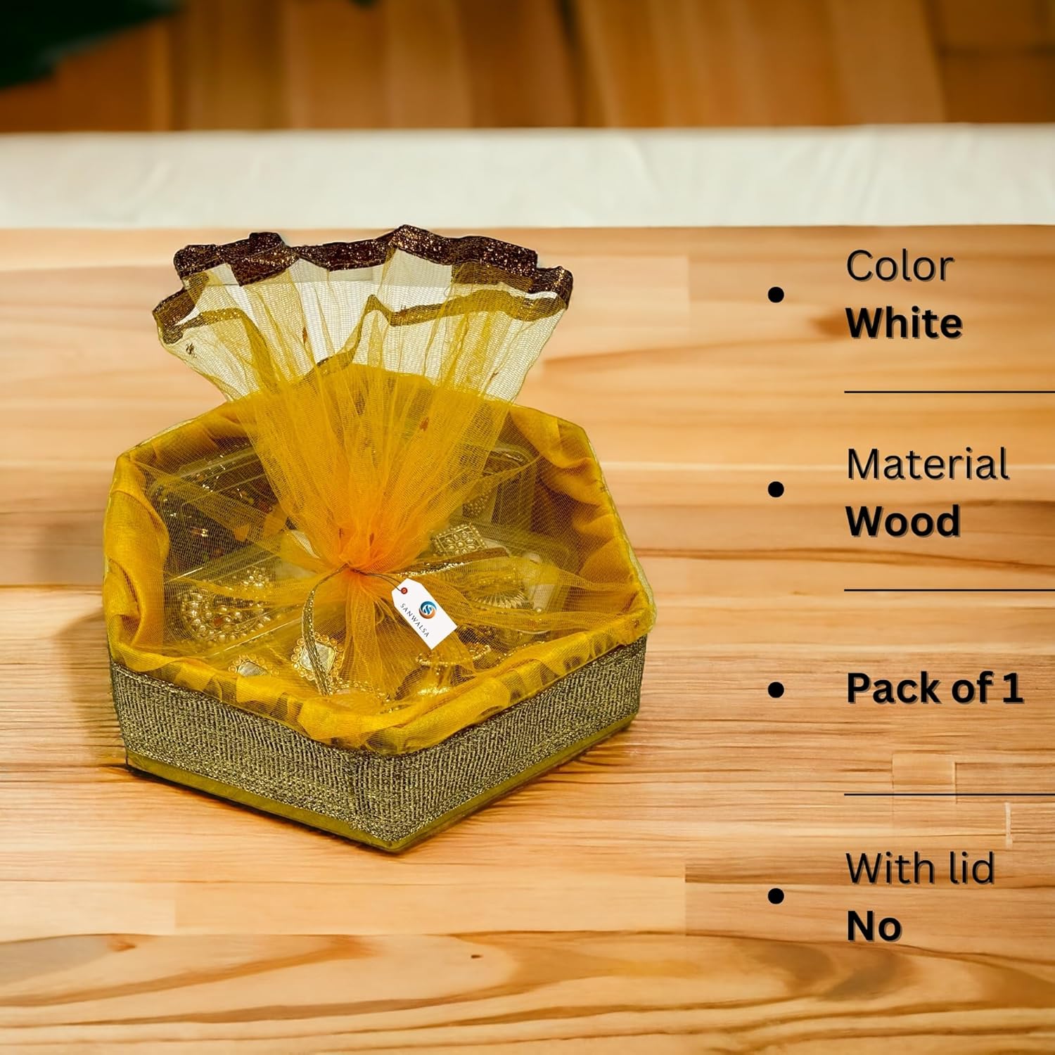 [SPECIFICATION]: SMALL SIZE: 8X8X2 inch, MATERIAL: MDF Base Pinewood Frame with Net Top, SHAPE: Hexa, COLOR: Yellow