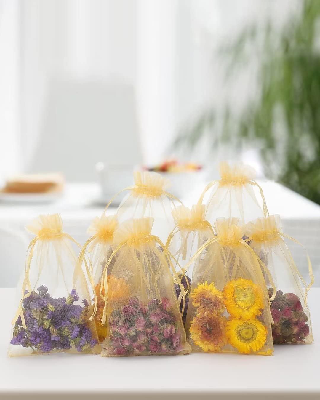 Gift Packaging: Perfect for wrapping small gifts like jewelry, perfumes, and other trinkets, giving them an elegant touch.Wedding and Party Favors: Ideal for packaging wedding or party favors such as candies, chocolates, or mini decorative items.Jewelry Storage: Soft and breathable material makes them a great option for storing delicate jewelry pieces, preventing scratches or tarnishing.Cosmetic Storage: These pouches are great for organizing cosmetics, makeup brushes, or skincare products, making them portable for travel.Craft and DIY Projects: Perfect for storing craft supplies such as beads, buttons, ribbons, or small sewing kits.Organizing Small Items: Use them for organizing small household items like hair accessories, office supplies, or sewing notions.Special Occasion Gifts: The elegant look of the tissue organza pouch makes it a suitable choice for gifting on birthdays, holidays, or anniversaries.Event Decor: Can be used to create decorative arrangements for tables or events, often holding candles, potpourri, or flowers.Essential Oil & Fragrance Bags: Suitable for storing essential oils, incense, or fragrance sachets, as the material allows scents to subtly diffuse.Baby Shower and Newborn Gifts: Great for wrapping small baby gifts, such as booties, pacifiers, or baby jewelry.Christmas or Holiday Gifts: These pouches are often used during the festive season to wrap small holiday treats, gifts, or ornaments.Small Business Packaging: A stylish and cost-effective packaging solution for small businesses selling handmade products, cosmetics, or accessories.Travel Accessories: Perfect for packing small travel accessories like toiletries, chargers, or cosmetics when traveling.Storage for Keepsakes: Ideal for storing small keepsakes, like tickets, letters, or photographs, in a delicate and safe manner.Scented Sachets: These pouches can be filled with dried lavender, rose petals, or other fragrant herbs to create a homemade scented sachet.