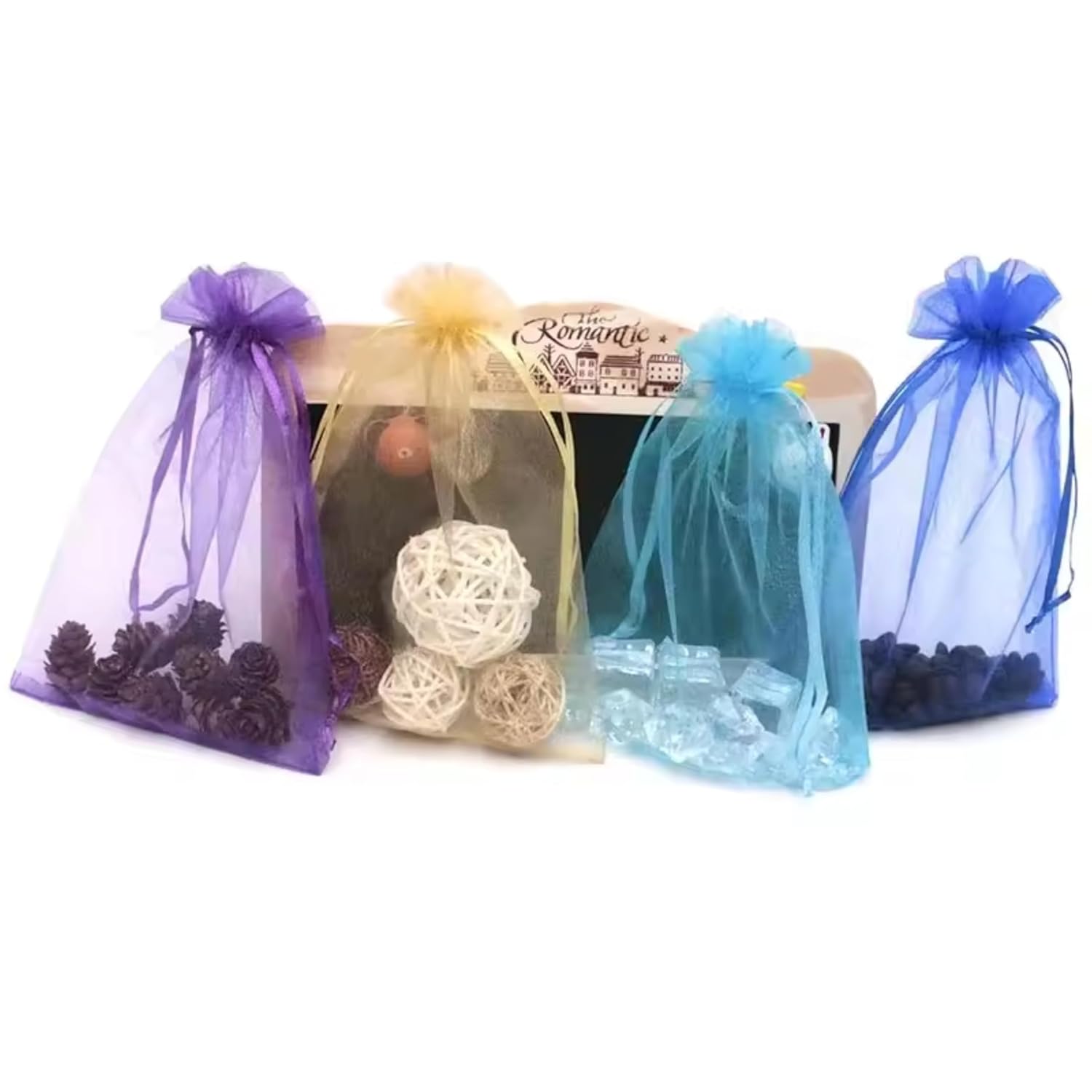 Gift Packaging: Perfect for wrapping small gifts like jewelry, perfumes, and other trinkets, giving them an elegant touch.Wedding and Party Favors: Ideal for packaging wedding or party favors such as candies, chocolates, or mini decorative items.Jewelry Storage: Soft and breathable material makes them a great option for storing delicate jewelry pieces, preventing scratches or tarnishing.Cosmetic Storage: These pouches are great for organizing cosmetics, makeup brushes, or skincare products, making them portable for travel.Craft and DIY Projects: Perfect for storing craft supplies such as beads, buttons, ribbons, or small sewing kits.Organizing Small Items: Use them for organizing small household items like hair accessories, office supplies, or sewing notions.Special Occasion Gifts: The elegant look of the tissue organza pouch makes it a suitable choice for gifting on birthdays, holidays, or anniversaries.Event Decor: Can be used to create decorative arrangements for tables or events, often holding candles, potpourri, or flowers.Essential Oil & Fragrance Bags: Suitable for storing essential oils, incense, or fragrance sachets, as the material allows scents to subtly diffuse.Baby Shower and Newborn Gifts: Great for wrapping small baby gifts, such as booties, pacifiers, or baby jewelry.Christmas or Holiday Gifts: These pouches are often used during the festive season to wrap small holiday treats, gifts, or ornaments.Small Business Packaging: A stylish and cost-effective packaging solution for small businesses selling handmade products, cosmetics, or accessories.Travel Accessories: Perfect for packing small travel accessories like toiletries, chargers, or cosmetics when traveling.Storage for Keepsakes: Ideal for storing small keepsakes, like tickets, letters, or photographs, in a delicate and safe manner.Scented Sachets: These pouches can be filled with dried lavender, rose petals, or other fragrant herbs to create a homemade scented sachet.
