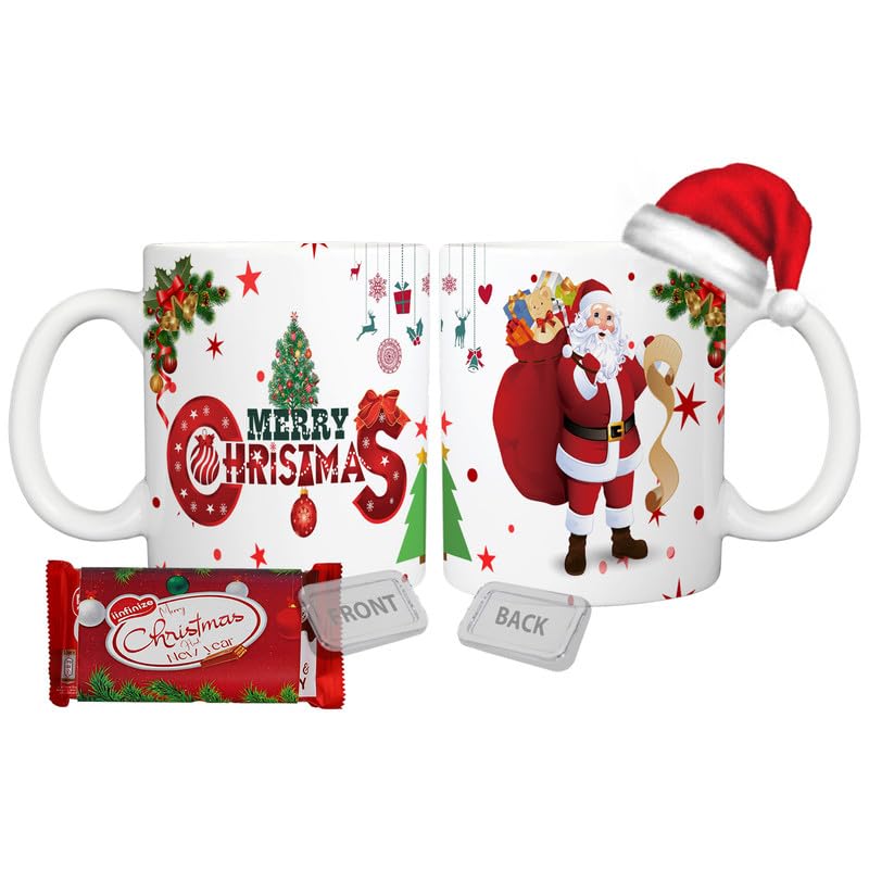Christmas Gift Hamper- 1 Printed Coffee Mug, 1 Santa Cap & Gift.