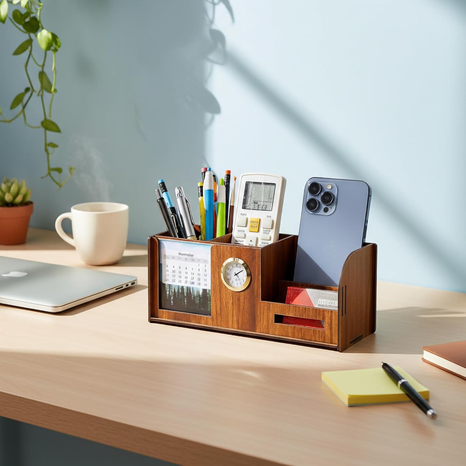 Mobile Phone Holder: Dedicated slot to safely keep your smartphone upright for easy access and visibility.