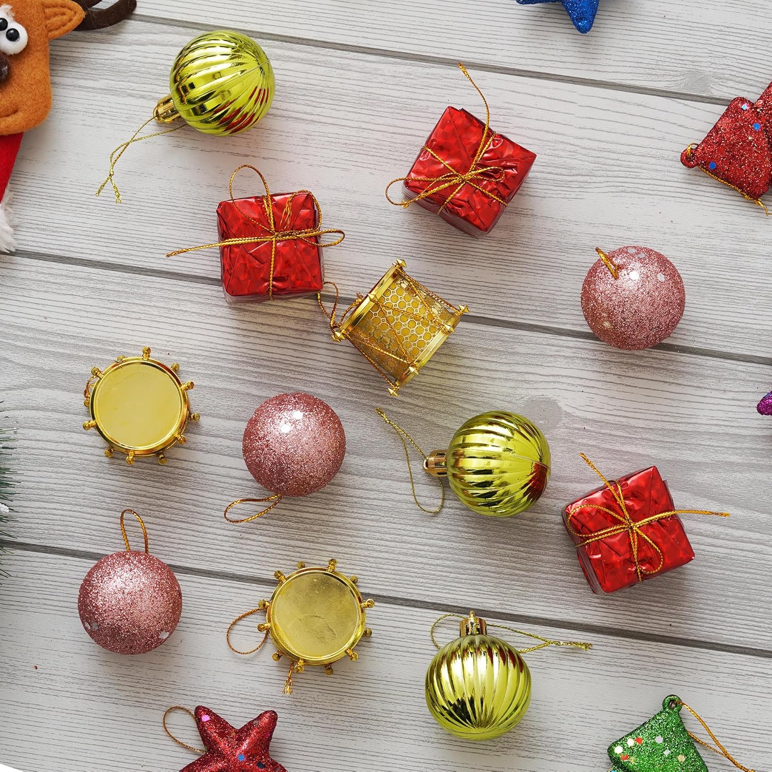Package Content – Pack of 1 Multicolor Christmas Tree Decoration Items – Balls, Gifts, Drums