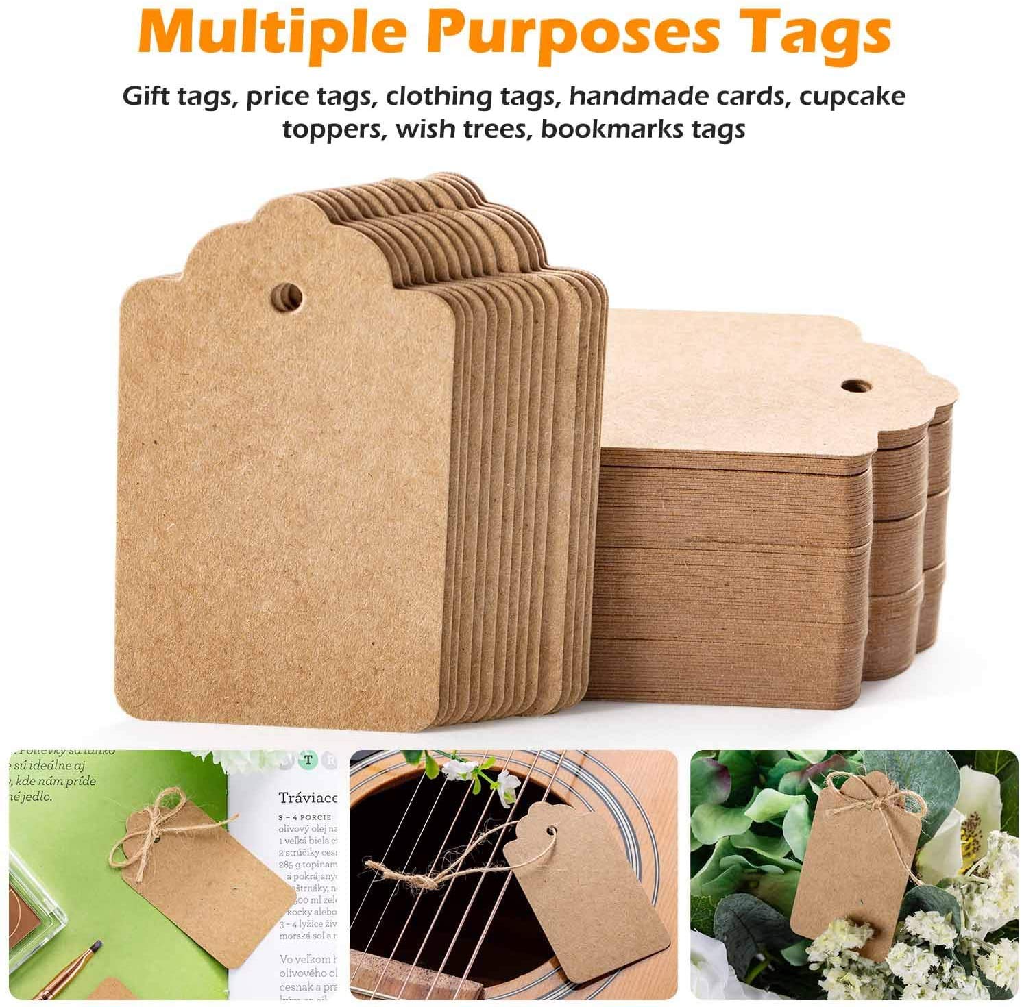 【Multi usage】: These kraft labels are perfect for price tags, gift tags, clothing tags, wedding name tags, student words cards, bookmarks tags, cupcake toppers, wish trees, student words cards, business cards, message cards, thank you card, love notes, luggage tags, thanksgiving card, ideal for Christmas, Halloween, wedding, engagement, baby shower and exhibition, also can according to your idea to DIY for office home party and more.