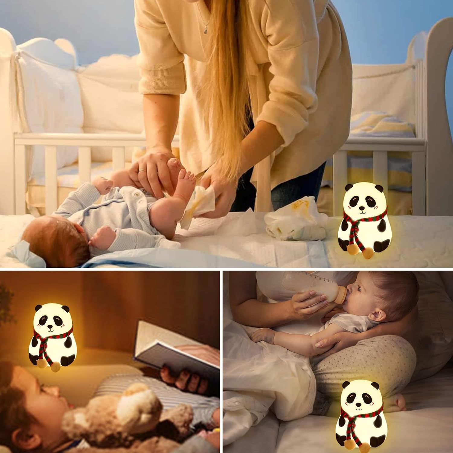 【Night Light for Baby Nursery】This adorable panda night light is made of BPA-free silicone and is as safe as cuddling your baby toddler. It is so soft it can be squeezed like a stress ball. This panda pat light can be adjusted to 7 colors. It emits a cozy and soft light that won’t harm your baby’s eyes.