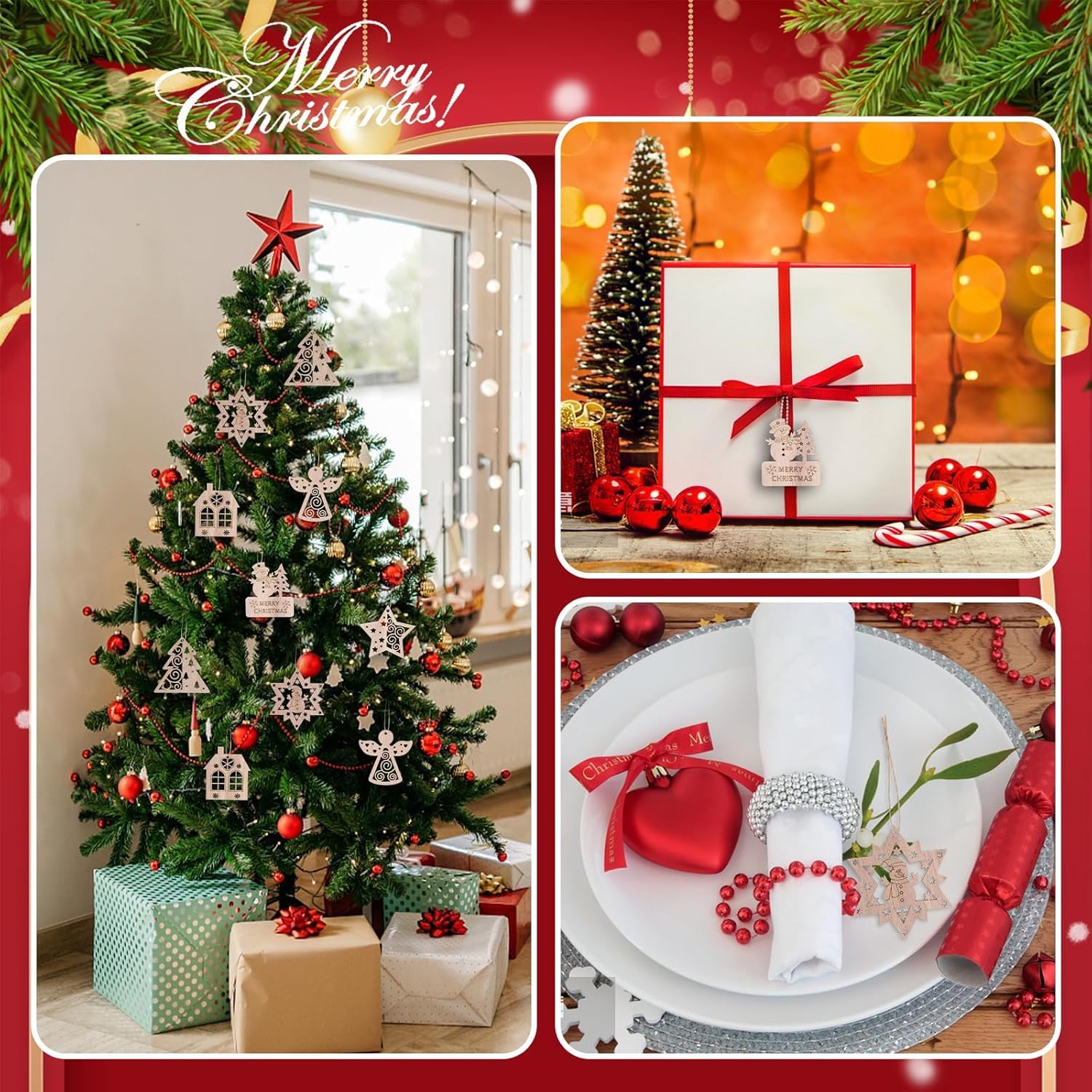Versatile Holiday Décor These wooden ornaments are perfect not only for Christmas tree decorations but also as gift tags, party favors, or DIY crafts for special holiday events. The timeless designs complement a variety of holiday themes.