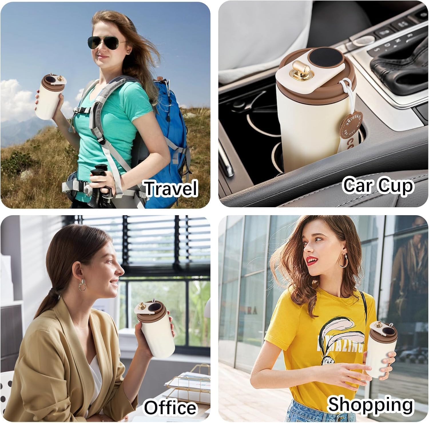 Coffee mug made of high quality stainless steel, durable and prevents the increase of bacteria, keeps drinks odor free; Anti-slip protective cover prevents the mug from falling; The buckle never spring back to touch your nose, you can easily open the lid with just one hand.