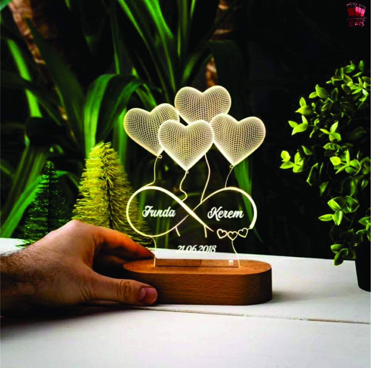 3D Illusion with LED Light: This 3D lamp has a unique LED light heart shape. The 3D lamp breaks the bounds of traditional gifts for couples, adding LED lights that can be used as a night light, becoming more modern and versatile for Wedding Couples. Soft LED lights can show clear at night, and create a warm atmosphere in your room for peace and comfort at night. Its transparent material can highlight your name better.