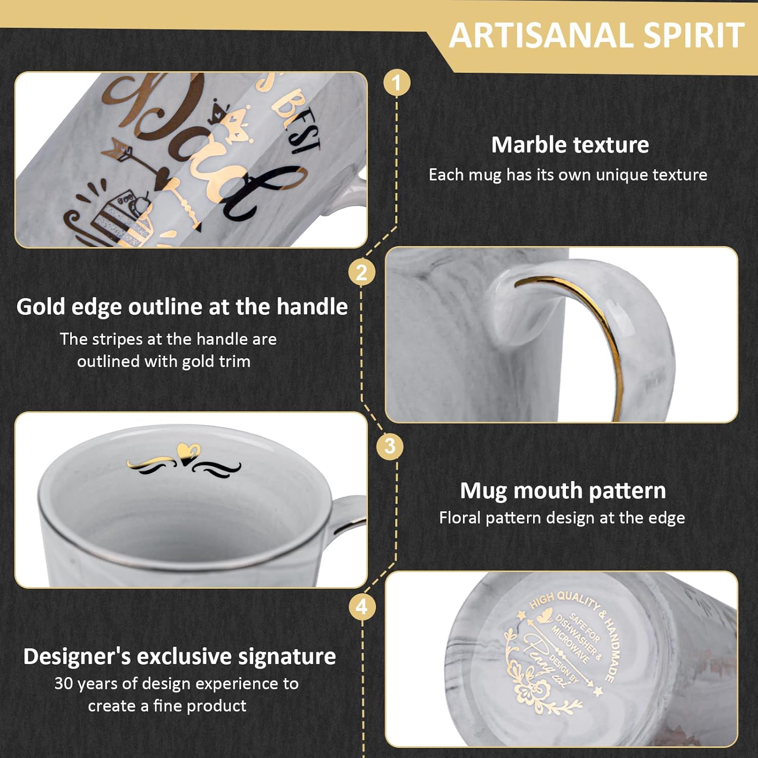 Premium Materials & Gold Design – Made with high qualit ceramic, printed gold, and the dad mug use in microwave and dishwasher safe. The handle is easy to grip and with its sturdy ceramic construction, the ceramic mug has a beautiful texture and shine. If you want to get closer to your dad, give him this mug, give him a hug and tell him he’s the best father in the world