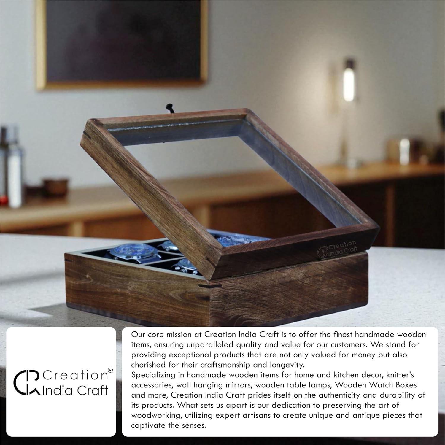 Established in 2010, Creation India Craft began as a family business rooted in a deep passion for craftsmanship and quality. While there isn’t a specific origin story, the brand’s journey is steeped in the rich tradition of artisanal woodworking, passed down through generations.