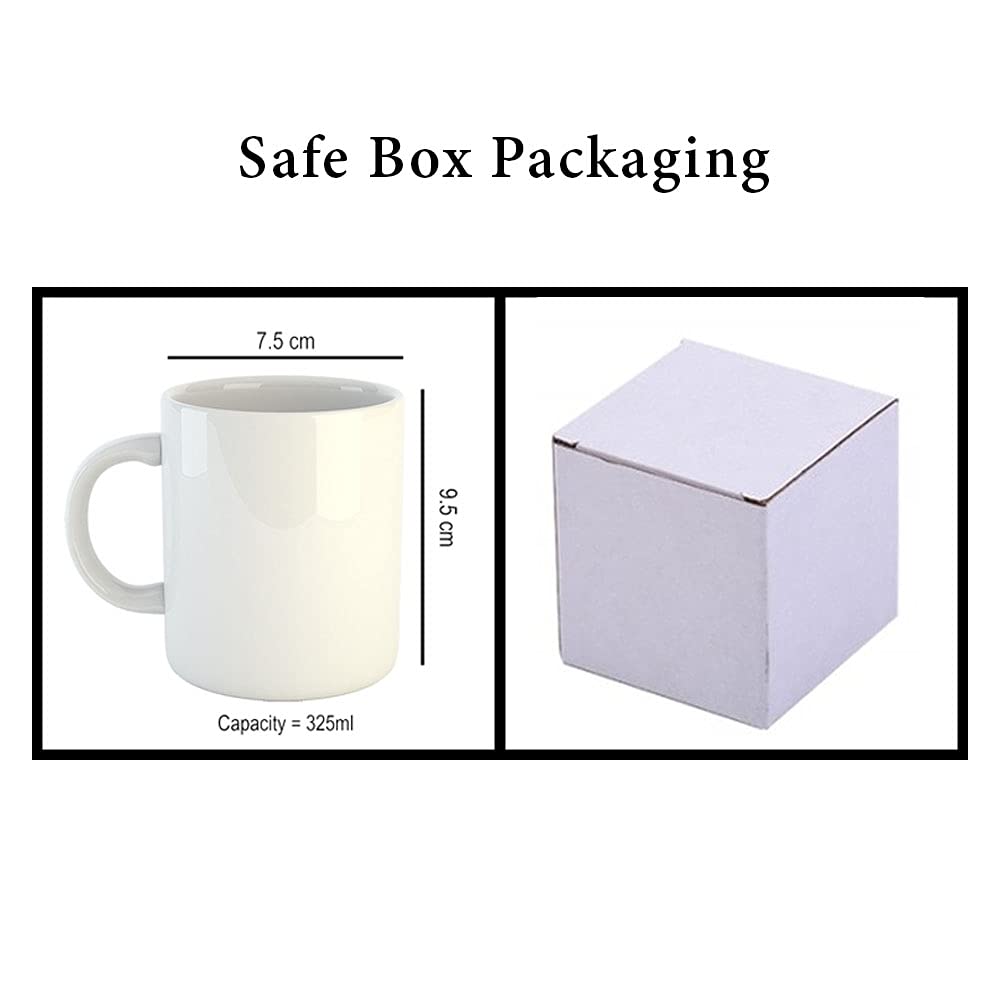 BEST QUALITY & PACKAGING – Mug is 11 OZ, 325 ML, Made Up of Best Quality & Durable White Ceramic Material. Prints on Coffee Mugs is of Top Quality, Corrugated Box Safe for Packaging