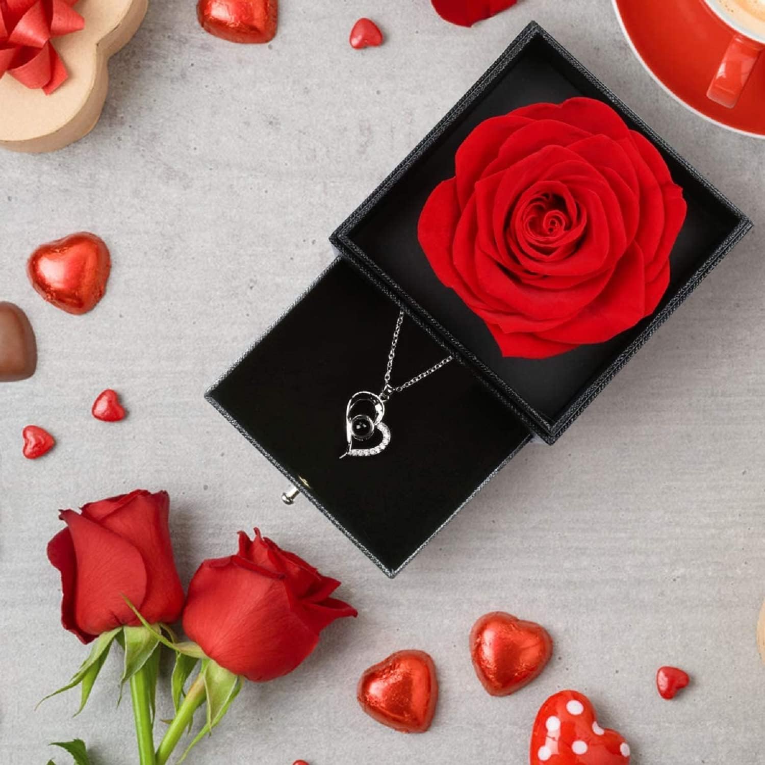 Jewelry Box with Drawer: GIFEY eternal rose is displayed in an elegant jewelry box which has a small drawer itself. The box is sturdy and durable, providing nice protection for your necklace. As an exquisite luxury gift, you can also use it to store any other small jewelry like rings, earrings.