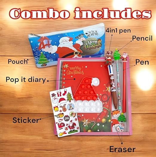 Package Includes : Combo Stationery ( Pouch, Popit Diary, Sticker, Eraser, Pen, Pencil, 4 in 1 Pen )