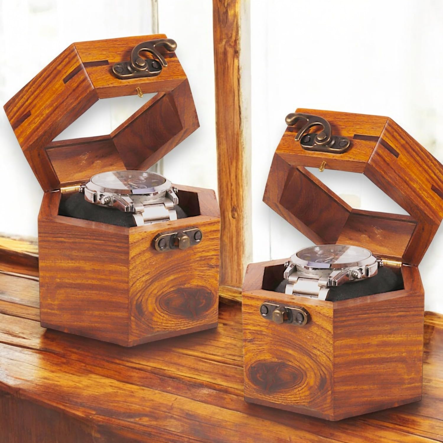 The Handcrafted Sheesham Wood Watch Box by SRA Home Decor is a premium storage solution inspired by the elegance of a honeycomb. Meticulously handcrafted by skilled artisans, this 4×4-inch box is made from high-quality Sheesham wood (Indian Rosewood), known for its durability and rich natural grain. Designed to protect your timepiece from dust and scratches, it blends functionality with timeless style, making it a perfect addition to any dresser or workspace. The intricate honeycomb pattern enhances its visual appeal, reflecting both craftsmanship and sophistication. Since 1999, SRA Home Decor has been dedicated to creating exquisite, handmade home décor items, ensuring each piece is unique and eco-friendly. This compact yet stylish watch box also makes for an ideal gift for watch enthusiasts, professionals, and loved ones on special occasions like birthdays, anniversaries, and Father’s Day. Elevate your collection with this artisanal masterpiece that embodies tradition and elegance.