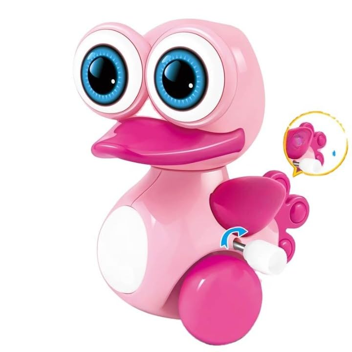 Engaging Design: Features a bright pink color with oversized, expressive eyes and a friendly cartoon duck face to capture a child’s attention and stimulate visual development.