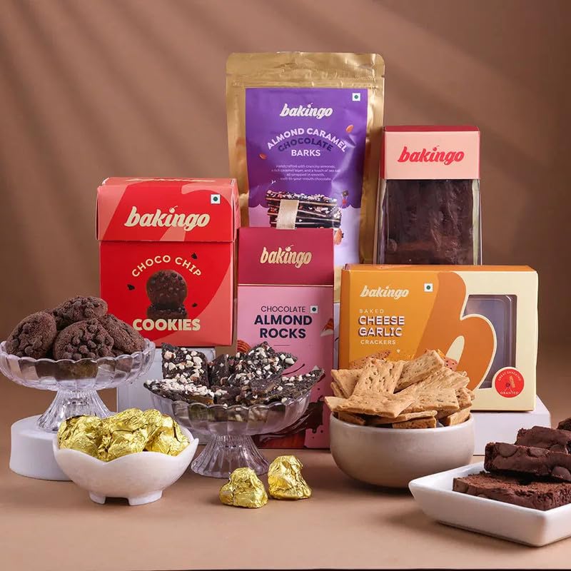 Celebrate every special moment with the Bakingo Premium Gift Hamper, a luxurious assortment of gourmet treats beautifully packed in an elegant gift box. Perfectly curated for birthdays, anniversaries, Christmas, New Year, or corporate gifting, this hamper blends the richness of chocolates, the crunch of crackers, and the sweetness of tea cakes — all baked to perfection. Each element is made using the finest ingredients and packed fresh, ensuring an indulgent experience in every bite. Whether you want to surprise a loved one or treat yourself, this premium gift box by Bakingo is a delicious way to spread happiness and festive cheer.