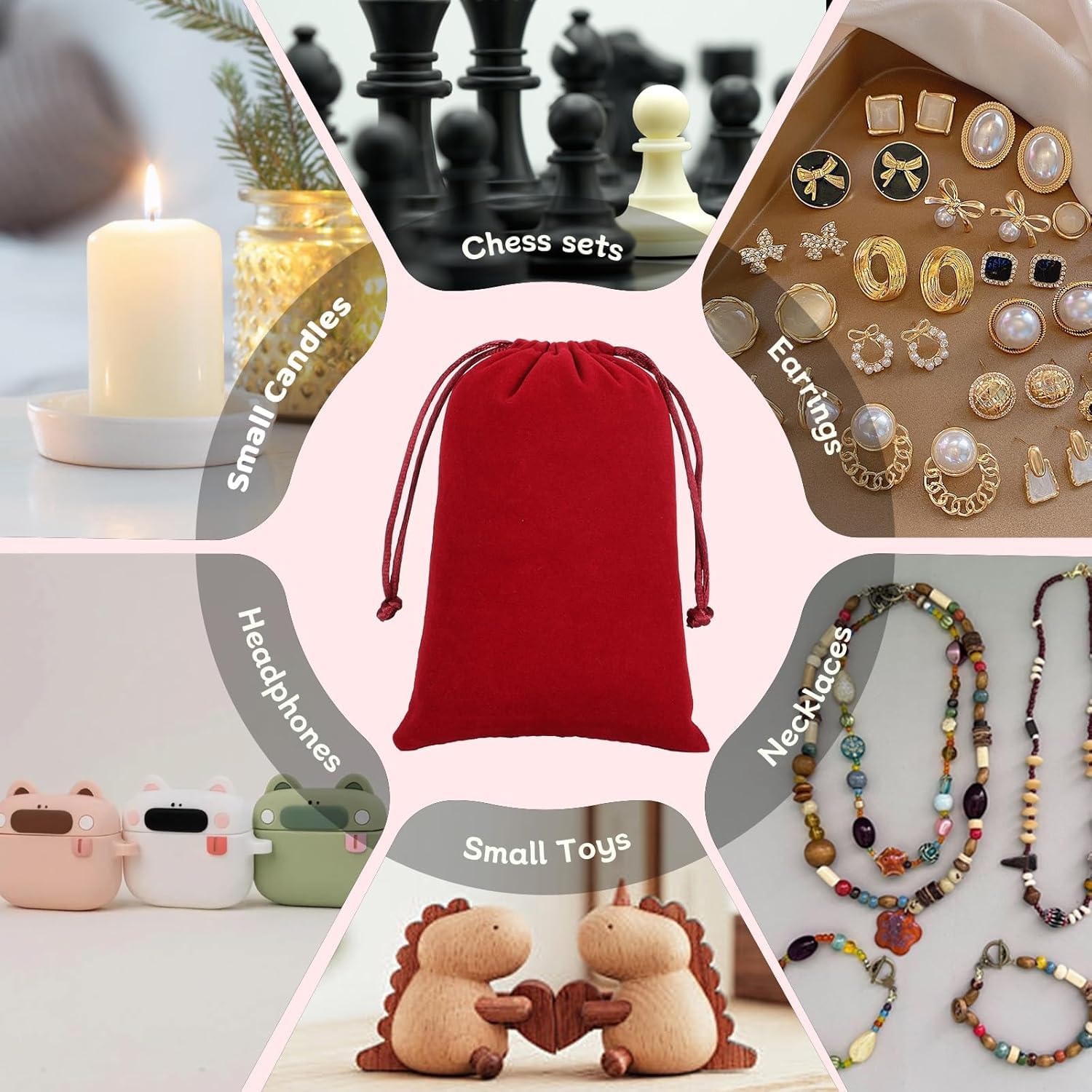 Velvet Drawstring Bags: These Jewelry Pouches are made of high quality Velvet Cloth, elegant, durable, reusable and sustainable. Great for sending your guests home with some special gift.