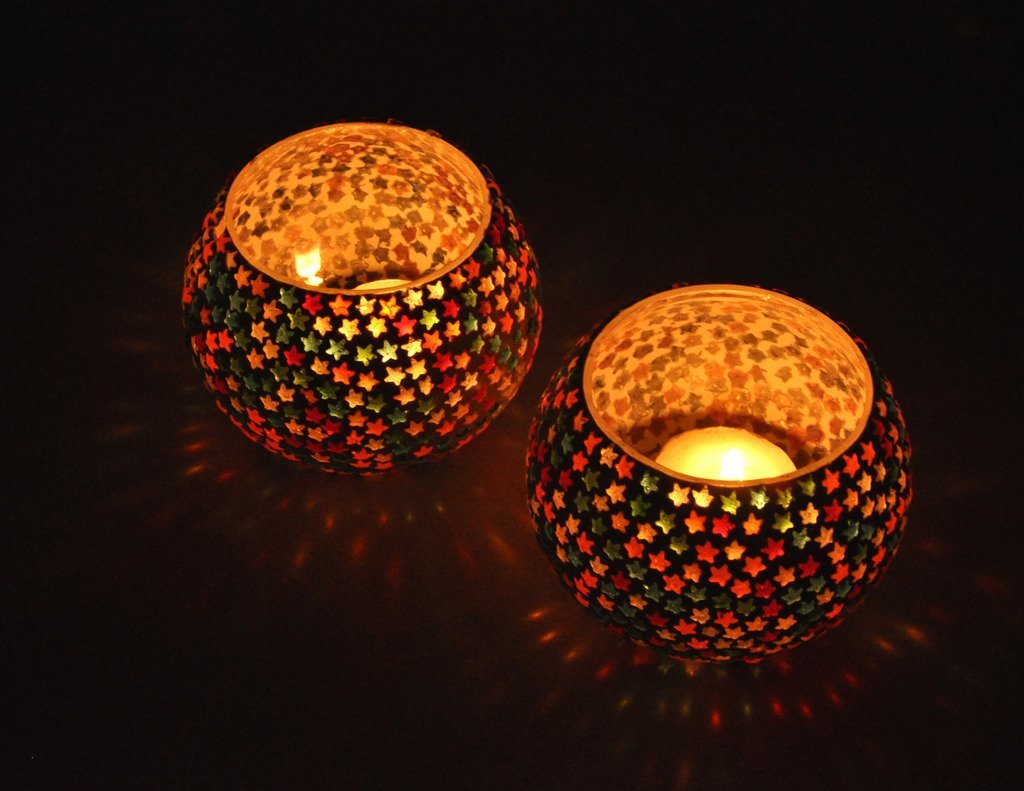 Package Contains : Pack of 2 Turkish Mosaic Glass Tealight Candle Holders Votives