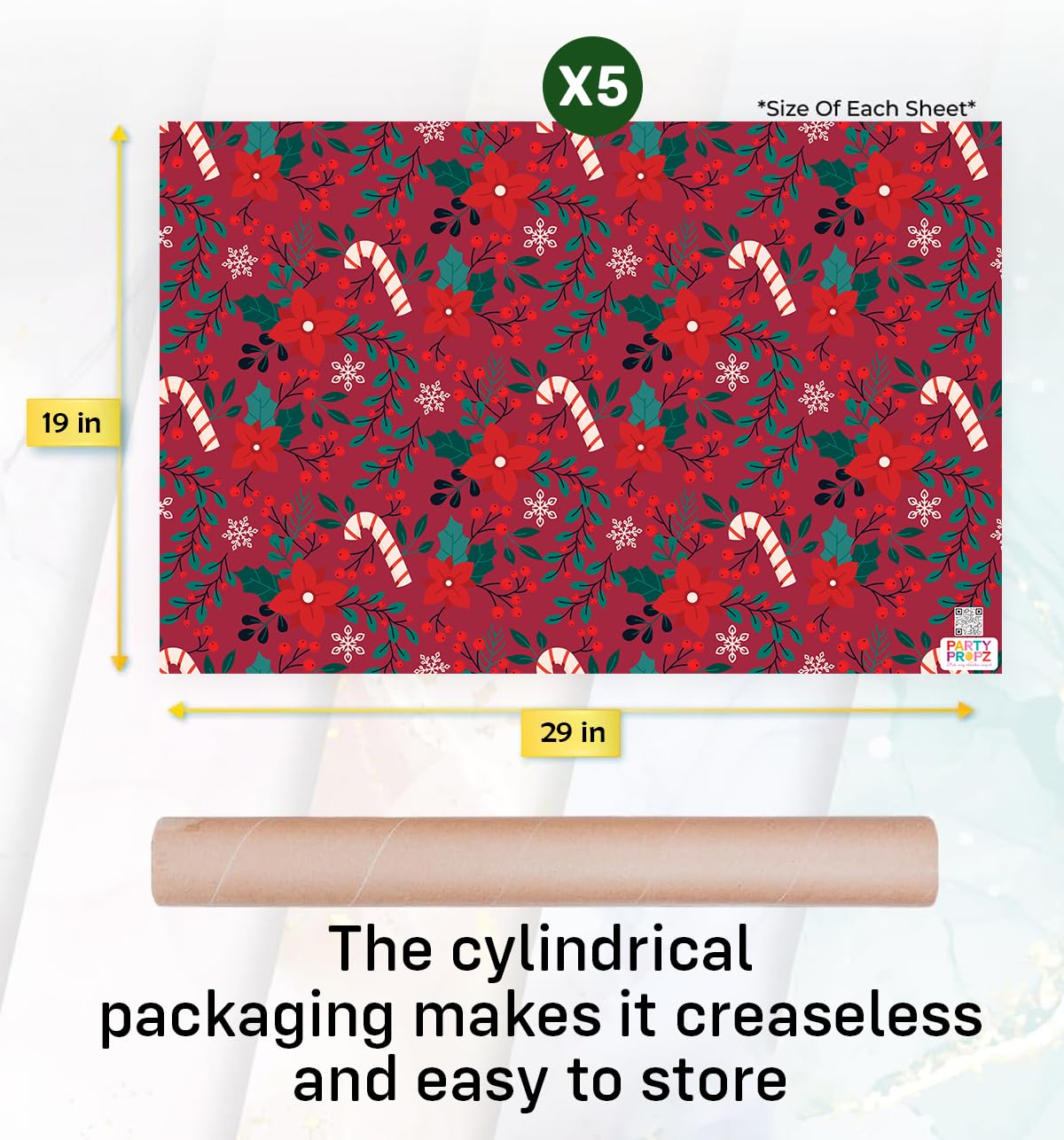 CHRISTMAS WRAPPING PAPER SET: This pack includes 5 Pcs Christmas wrapping paper, featuring festive patterns suitable for christmas gift wrapping paper, christmas gift wrapping sheets, and christmas wrapping paper for gift packing. The sheets are large enough for boxes, hampers, and small gift items, making them ideal christmas gift wrap paper and gift wrapping paper christmas options. Perfect for presenting gifts beautifully in the holiday season.