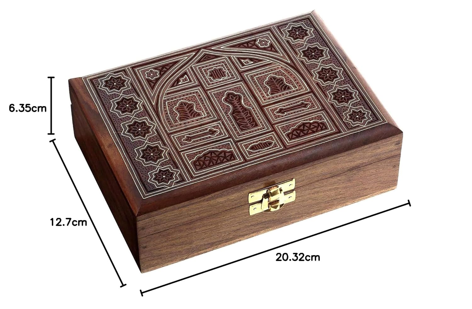 Elegant Handmade Craftsmanship: Beautifully hand-carved by skilled artisans, featuring intricate traditional designs that add a touch of vintage charm and cultural richness to any space.Durable Wooden Construction: Made from premium quality wood with a rustic brown finish, offering lasting durability and a naturally warm, antique aesthetic that complements various décor styles.Spacious & Thoughtfully Designed Storage: Multiple compartments allow for organized storage of bangles, necklaces, earrings, rings, and other accessories — keeping everything in its place and easy to access.Secure Clasp Lock Mechanism: Equipped with a reliable locking system to keep your valuables safe, while the soft inner lining helps prevent scratches and damage to delicate jewellery pieces.