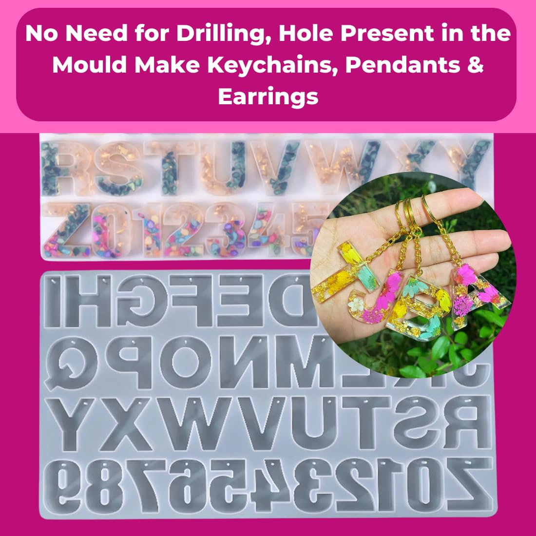 Crafted From Reusable Silicone, This Alphabet Mould for Resin Art Kit Offers Superior Flexibility and Durability Compared to Other Letter Silicone Resin Mould Available on the Market in the Keychain Making Kit.