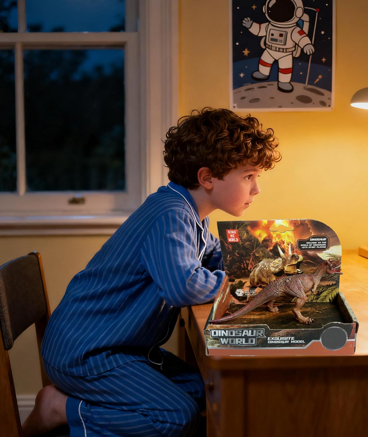Dinosaur Toy, dinosaur, 6 Inch Horned Dinosaur Figure, Perfect for School Projects, Birthday Parties, Educational Gifts, Christmas and New Year Presents, English Color Box Packaging Educational Dinosaur Toy: This 6 inch horned dinosaur figure is ideal for school projects and reports; Helps children learn about prehistoric creatures in a fun and interactive way; Perfect for dinosaur science projects or educational displays. Realistic design: This dinosaur toy features a lifelike horned dragon design with delicate textures, making it an excellent addition to any dinosaur collection; The complex craftsmanship enhances the prehistoric appeal, making it perfect for those interested in dinosaur toys. Detailed Design: The dinosaur toy features realistic detailing and vibrant colors; Hand-painted with intricate textures to enhance the learning experience; Durable construction ensures long-lasting play. Versatile Use: Suitable for various settings, this dinosaur figure can be used as a room decor piece or a collectible; Its design makes it a great fit for dinosaur enthusiasts who appreciate dinosaur toys. Engaging Play: Encourages imaginative play and creativity; Helps children develop an interest in natural history; A great addition to any dinosaur-themed collection.