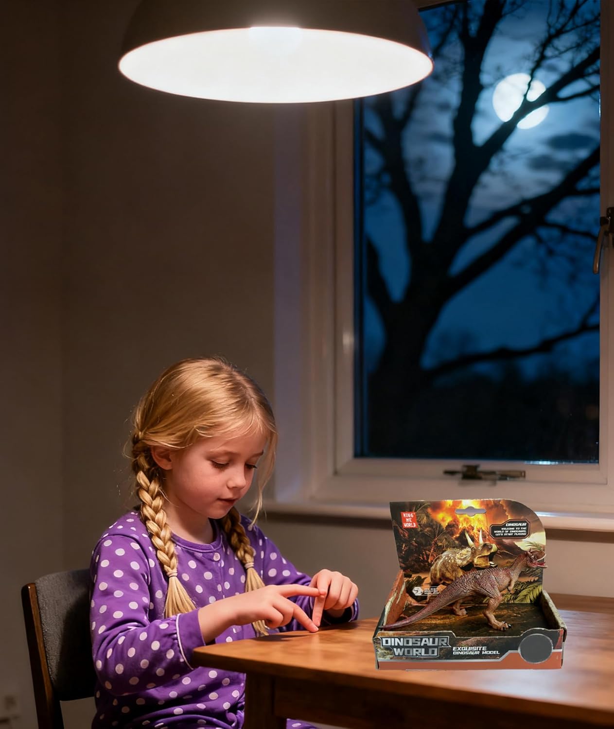 Detailed Design: The dinosaur toy features realistic detailing and vibrant colors; Hand-painted with intricate textures to enhance the learning experience; Durable construction ensures long-lasting play.