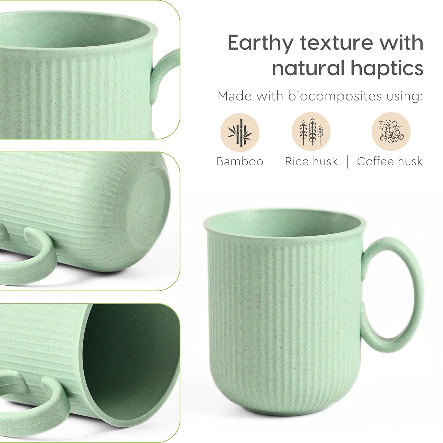 CLIMATE FRIENDLY- Statement mugs are made with repurposed coffee husk, bamboo and rice husk that locks the biogenic carbon in these products. As a result, the carbon footprint is significantly lower, supporting our fight against climate and use of food-safe binders, conserve resources and prevent plastic pollution reducing carbon footprint which ensure safety for intended use and reusable.