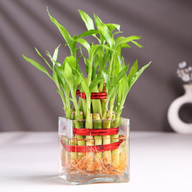 Bring harmony, positivity, and elegance to your home or office with FlowerAura Premium Air Purify Live 2 Layer Bamboo Plant in Pot with Candle. This thoughtfully curated gift combines the natural charm of a lucky bamboo plant with the soothing ambiance of a premium candle, making it perfect for gifting or elevating your décor. The 2 Layer Bamboo Plant, also known as Lucky Bamboo, is revered for its air-purifying properties and feng shui benefits. It naturally filters toxins from indoor air while symbolizing growth, prosperity, and good fortune. The unique two-layered design adds a modern aesthetic, making it an attractive centerpiece for homes, offices, or workspaces. Housed in a stylish and durable pot, the bamboo thrives with minimal care while adding a fresh, green appeal to any interior. The pot design complements both contemporary and traditional décor, enhancing your space with natural elegance. Paired with the plant is a premium candle, providing a relaxing aroma that promotes calmness, wellness, and a cozy ambiance. Together, the bamboo plant and candle create a balanced, thoughtful gift that combines nature, positivity, and sensory delight. Perfect for Christmas, New Year, weddings, anniversaries, or birthdays, this FlowerAura Premium 2 Layer Bamboo Plant in Pot with Candle is elegantly packaged and ready to gift. It symbolizes care, prosperity, and thoughtful living — a unique present that nurtures both the environment and the senses.