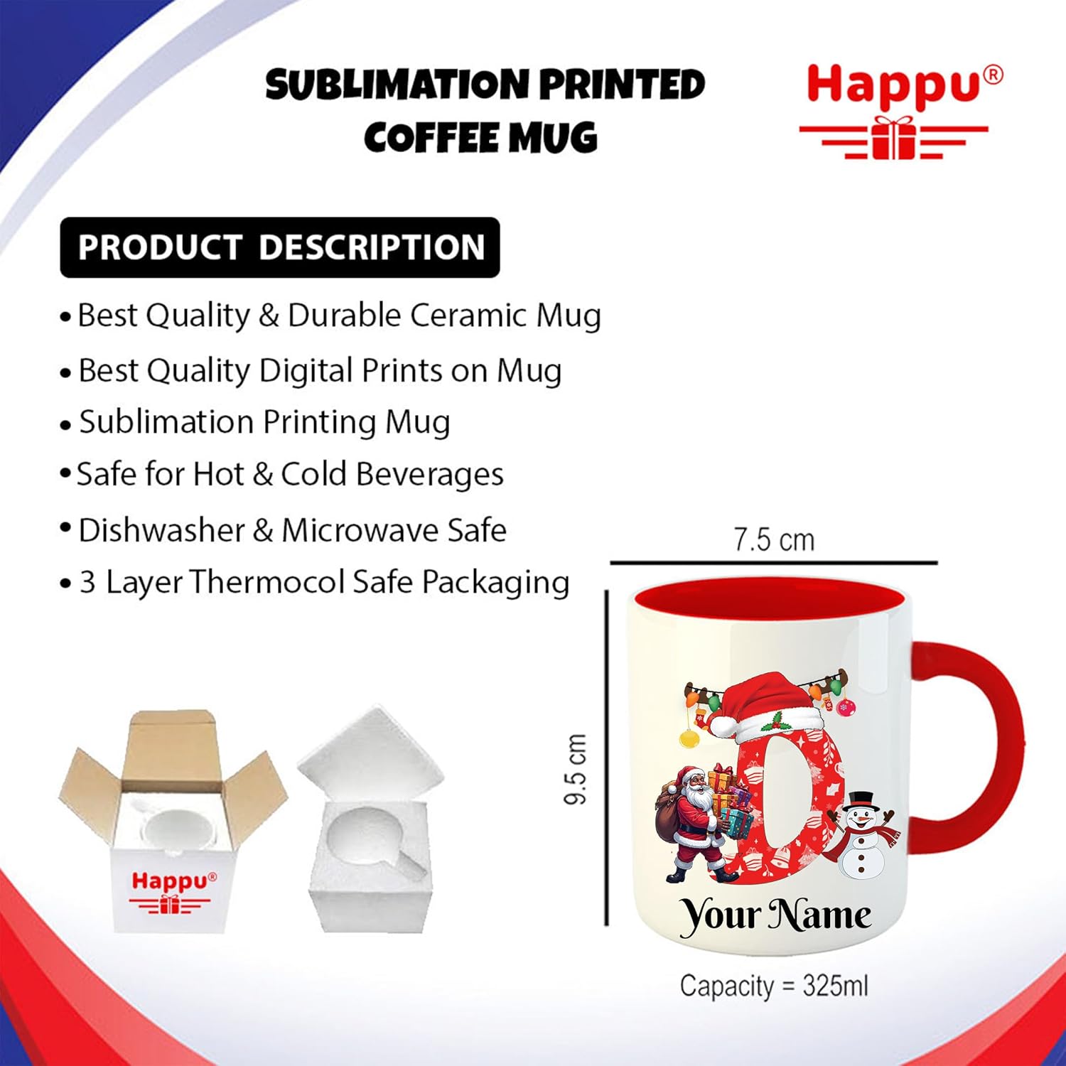 Comfortable Grip & Perfect Size: Features a sturdy handle and 325 ml capacity—ideal for coffee, tea, hot chocolate, soups, or holiday beverages.