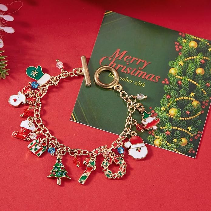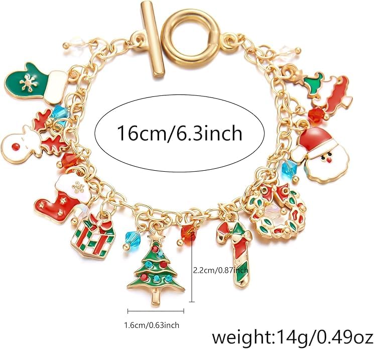 Generic Name : Christmas Charm Bracelet for Girls & Women | Cute Xmas Theme Santa Tree Candy Cane Snowflake Charms | Festive Holiday Jewellery Gift for Christmas Parties & Secret Santa
