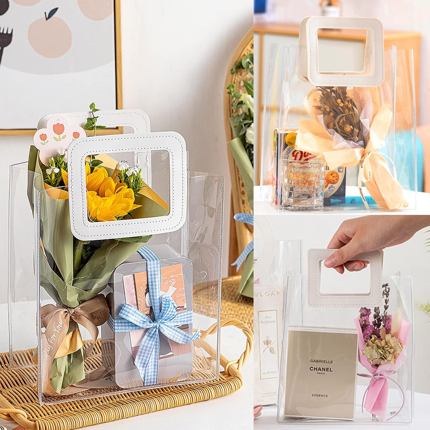 SEE-THOUGH & REINFORCED SEAMS: Wedding gift bags are made of transparent PVC make it easier to spot your items without rummaging. Waterproof material that can better protect your gift or products from dust and water, any dirt on the smooth surface can be easily wiped out.