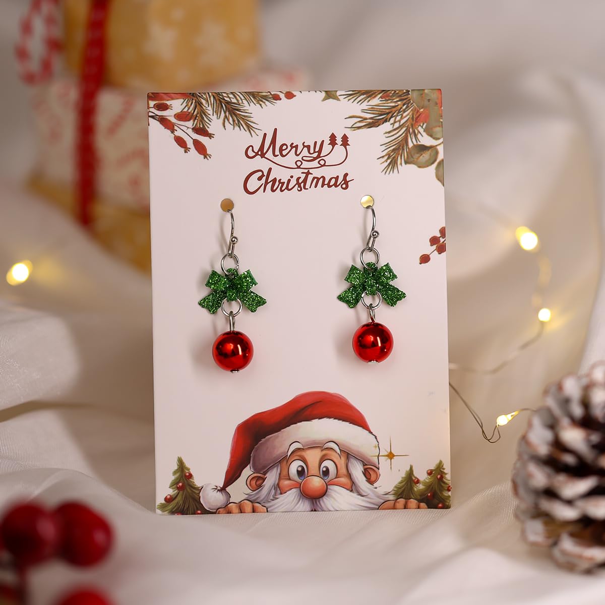 Christmas Earrings for Women – Red Ornament Ball Dangle with Green Glitter Bow, Holiday Earrings Festive Christmas Jewelry Gifts for Ugly Sweater Party & Secret Santa