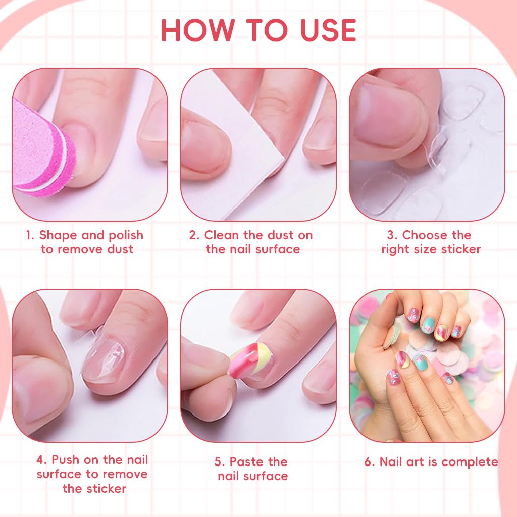 EASY PRESS-ON APPLICATION: No glue, no mess, just stick the adhesive jelly tab and simple press-on fun. Each girls nails for kids attaches quickly and holds securely, making it perfect for beginners. Kids can effortlessly change styles anytime, encouraging creativity, coordination, and self-expression through a delightful, hassle-free manicure experience.
