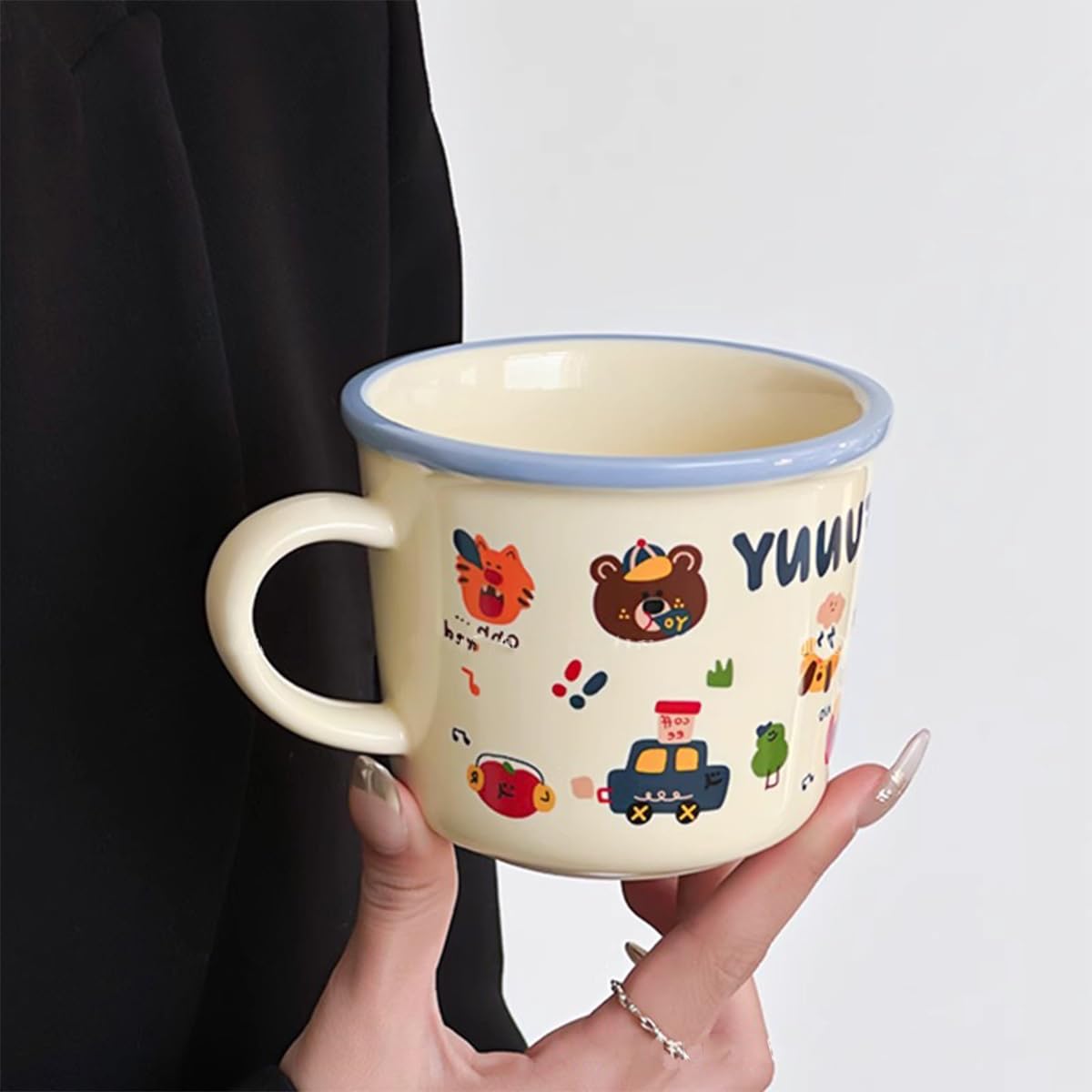 𝐀𝐝𝐨𝐫𝐚𝐛𝐥𝐲 𝐃𝐞𝐬𝐢𝐠𝐧𝐞𝐝 𝐁𝐞𝐚𝐫 𝐌𝐮𝐠 – Features a charming cartoon bear print in playful styles like “Smile Brown,” “Funny Blue,” “Freedom Green,” and “Happy Yellow.” A cheerful start to any morning!