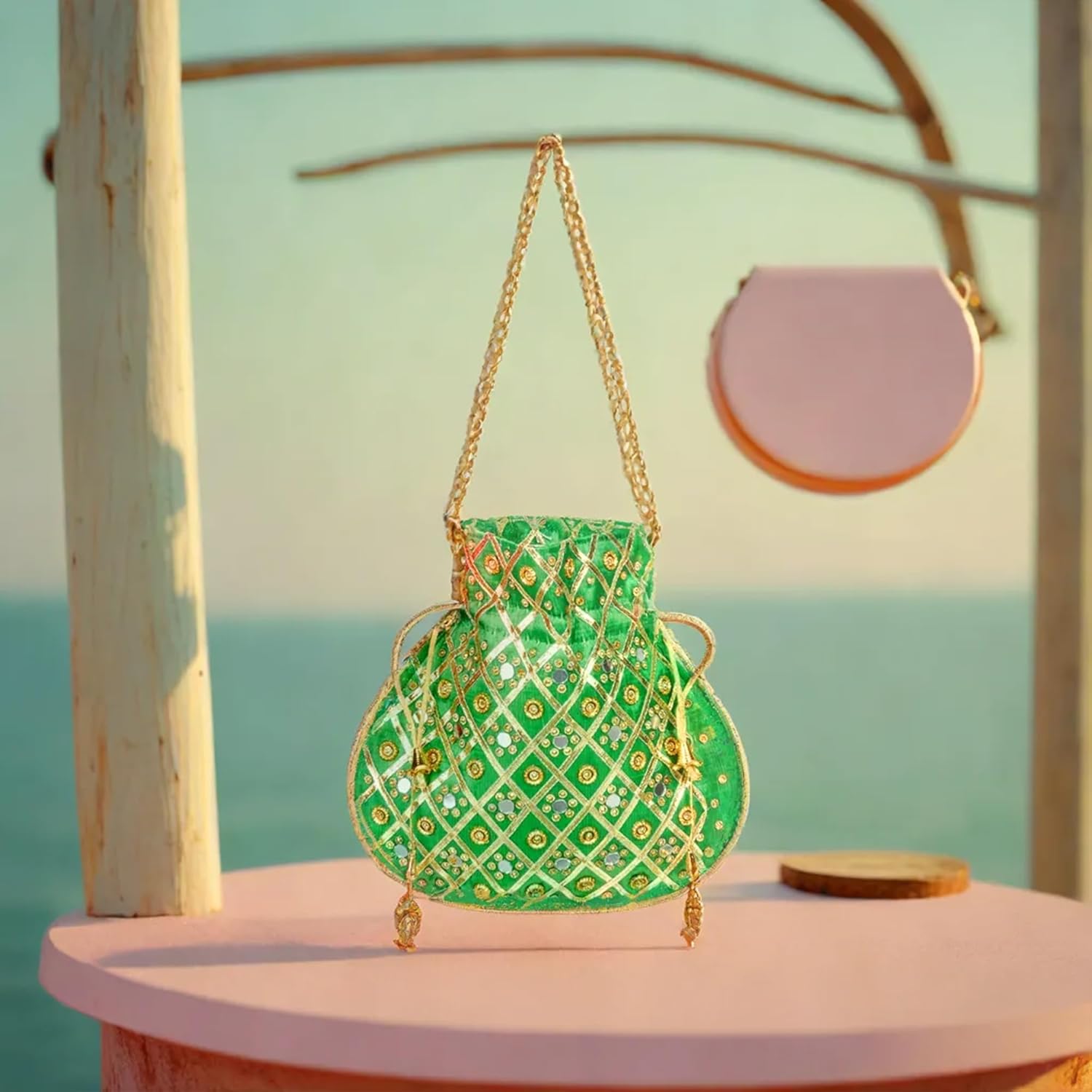 🔸 EXCLUSIVE & FUNCTIONAL ELEGANCE : The Potli holds an exclusive that effortlessly combines style with practicality, Unique Potli stands out for its ability to blend elegance seamlessly with practical use, making it a standout choice for those who appreciate both style and usefulness in their accessories. Potli makes it perfect for storing jewellery, cosmetics, keeping them safe and organized. The intricate designs and graceful materials add a touch of sophistication to any outfit or occasion.