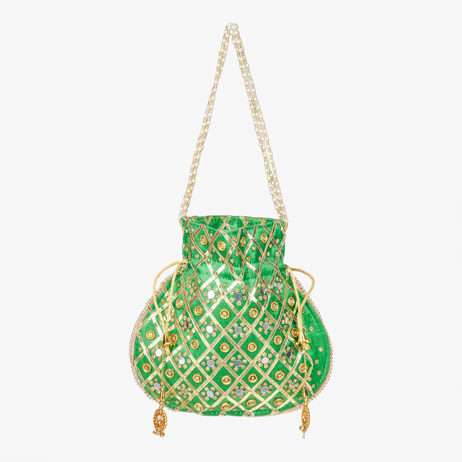 🔶 PACKAGE CONTAIN : 1 Piece Potli | Mirror Check-Design | MATERIAL : Silk | PRODUCT DIMENSION : 23 cm x 23 cm x 1 cm