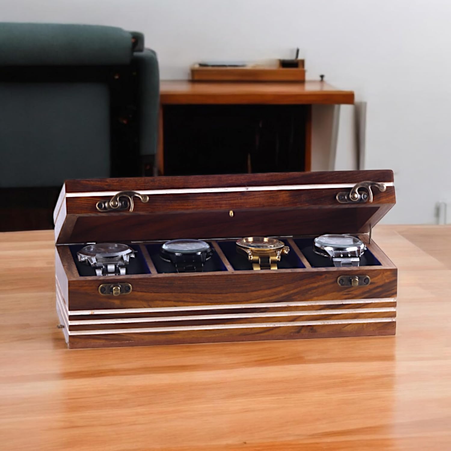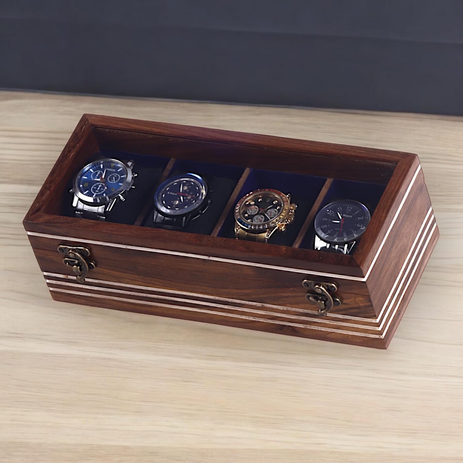 Dustproof Design: Keeps your watches safe from dust and other environmental elements. Lightweight Luxury: Indian Rosewood offers a luxurious feel without excessive weight
