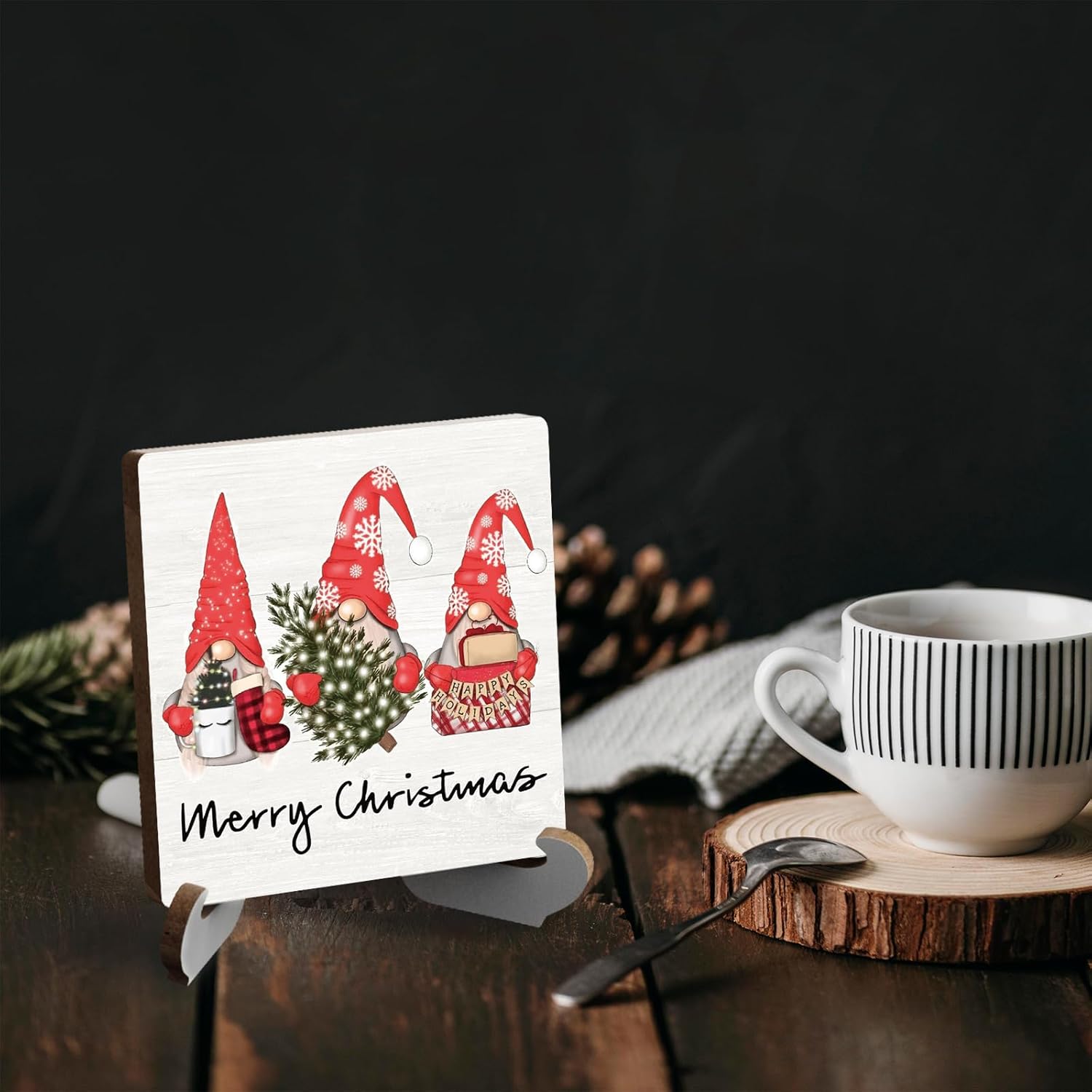 HIGH-QUALITY MATERIALS: Our Rustic Wooden Plaque with Wood Holder is made of high quality wood materials, not easy to deform or break, friendly to touch, suitable for your tabletop, convenient for your usage.