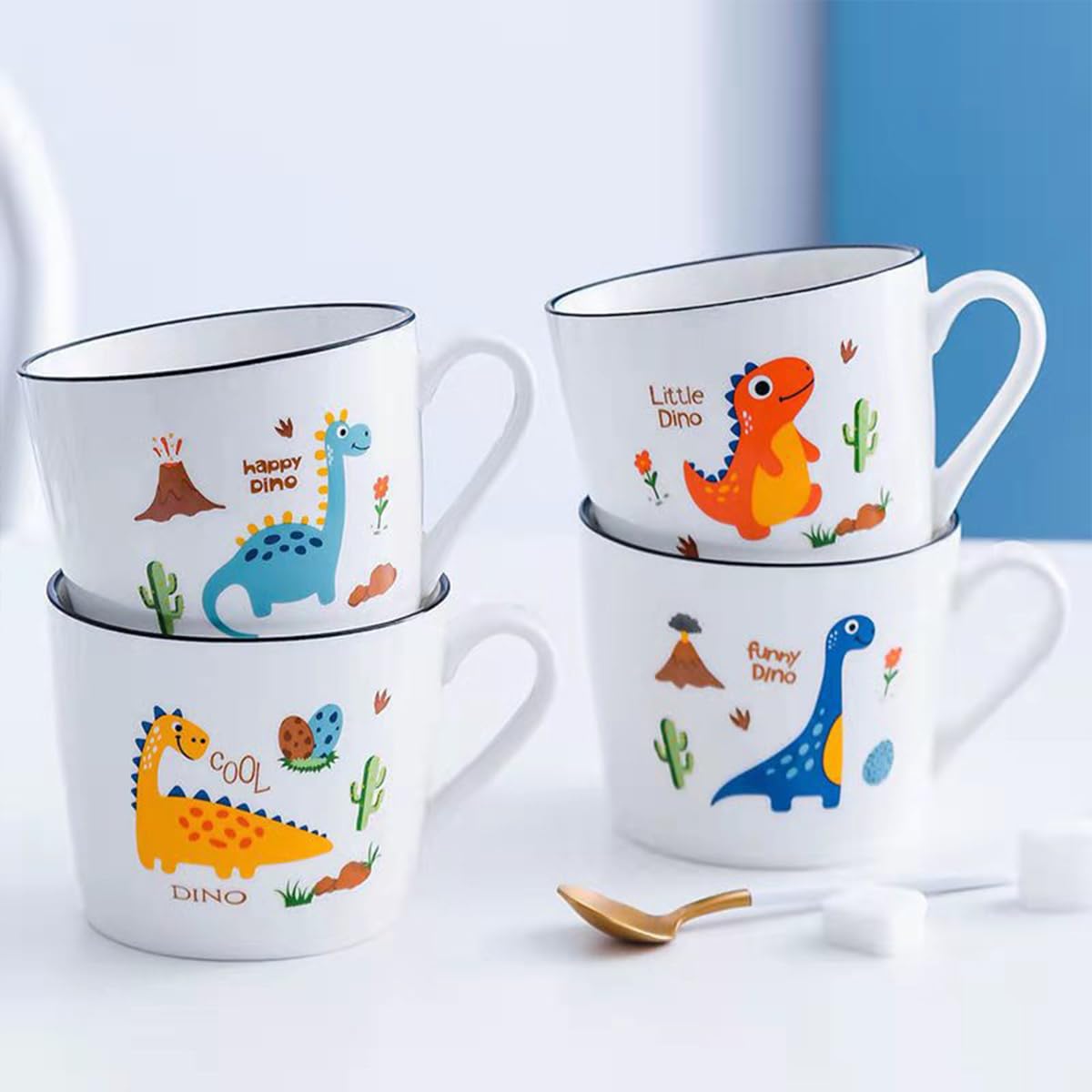 𝐅𝐮𝐧 𝐃𝐢𝐧𝐨𝐬𝐚𝐮𝐫 𝐂𝐚𝐫𝐭𝐨𝐨𝐧 𝐃𝐞𝐬𝐢𝐠𝐧 – Brightly colored with playful dinosaur artwork, this ceramic mug makes drinking milk or juice exciting for kids. A perfect way to brighten up any morning!