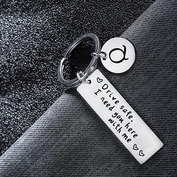 Drive Safe Keychain for Boyfriend Husband Dad Drive Safe Letter A-Z Keychain Gifts for Men Anniversary Valentines Day Gifts for Him Couple Gifts Father’s day Gifts Christmas Birthday Gifts
