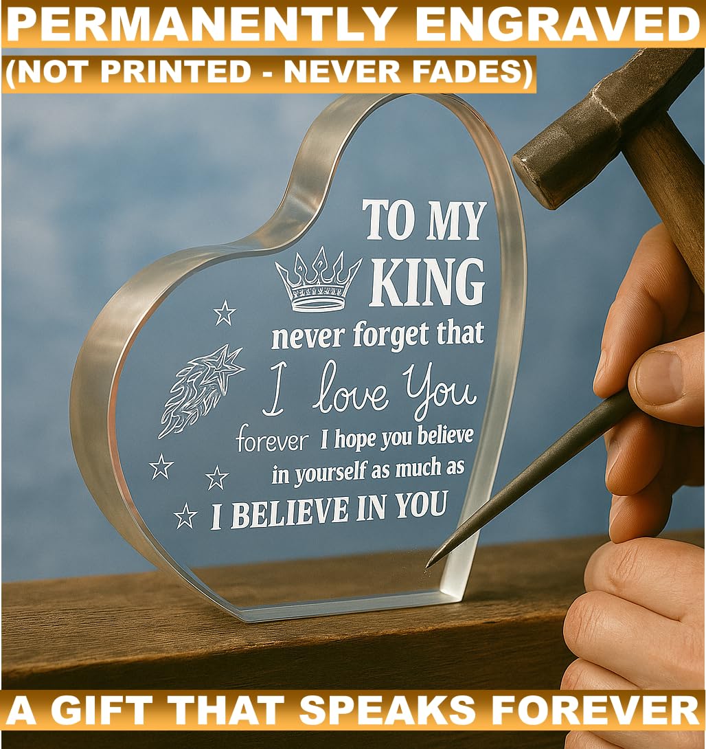 【Gifts for Boyfriend】: “To My King. Never forget that I love you forever. I hope you believe in yourself, as much as I believe in you.” What a sweet and firm confession. Our acrylic keepsake is the perfect valentines day gifts for him to show your love to boyfriend, this quote will be a constant reminder of your love and encouragement for your boyfriend