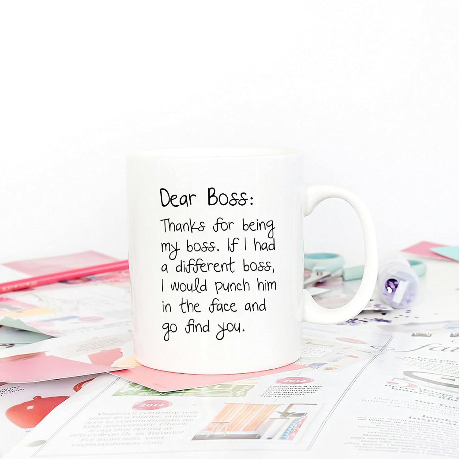 5Aup christmas gifts funny boss coffee mug and it is home and restaurant use, dishwasher and microwave safe, we also printed images on both sides.