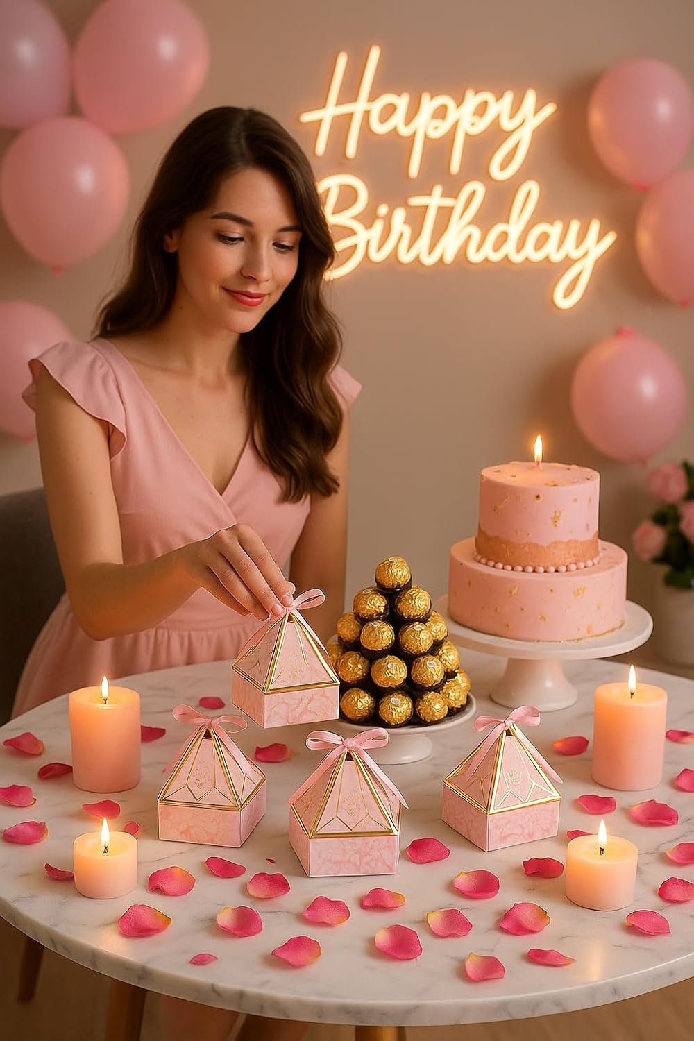 Vibrant Pink Color – The rich and vibrant pink color adds a touch of sophistication, making these boxes perfect for enhancing the decor of any themed event or celebration.