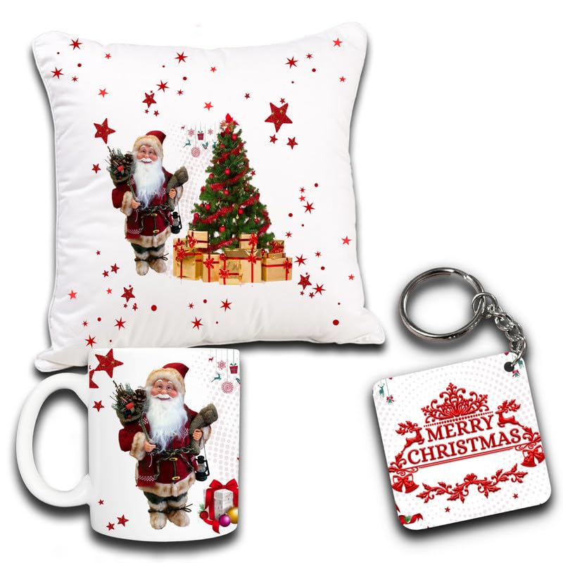 Christmas Gift Hamper- 1 Coffee Mug, 1 Pillow (Filler Included) and 1 Keychain.