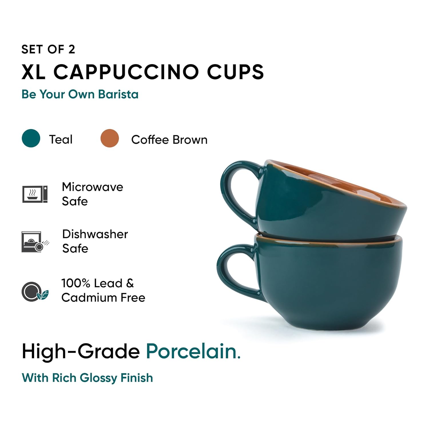 Included components: Set of 2 Large Coffee Cups (Cappuccino Cup), 330ml each