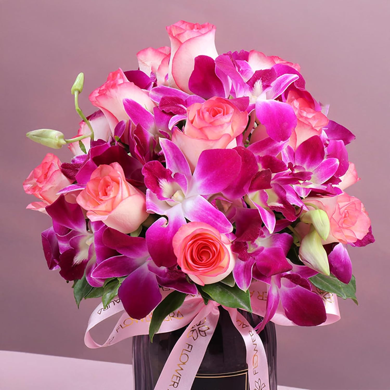 Celebrate beauty and elegance with the FlowerAura Premium Fresh Live Flower Bouquet, exquisitely arranged with 12 pink roses and 4 purple flowers in a Teraflora vase. This premium floral arrangement blends soft romance with vibrant charm, creating a visually stunning centerpiece suitable for special occasions and meaningful expressions.Pink roses symbolize admiration and grace, while purple flowers add depth and sophistication to the arrangement. Each live flower is carefully selected to maintain natural freshness, vibrant color, and soft floral texture. The Teraflora vase enhances the overall presentation, giving the bouquet a refined and decorative appeal ideal for home and indoor décor.This fresh flower arrangement complements birthdays, anniversaries, romantic surprises, Valentine’s Day, Women’s Day, Father’s Day, Mother’s Day, Farewell, Congratulations, House Warming, Sorry, Retirement, Get Well Soon, Small Parties, Baby Shower, Raksha Bandhan, Diwali, New Year, Holi, Christmas, Teacher’s Day, Girlfriend’s Day, Men’s Day, Rose Day, and memorable celebrations. The balanced combination of pink roses and purple flowers creates an elegant floral display that enhances personal moments and interior spaces.