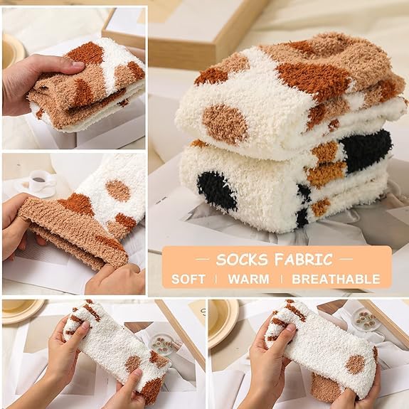 Premium Fuzzy Socks: Women’s fuzzy socks are made of polyester, spandex and coral fleece, making you feel as comfortable as walking on the cotton. In addition, our fuzzy socks for women can keep your feet warm and definitely perfect for winter. Keep you warm and against the cold all the time. Ultra Soft Fuzzy Socks: Designed with soft touch features, the fluffy socks will make your feet feel comfortable and keep your feet warm. Very comfortable and reduces fatigue after long indoor lounging. These comfortable cute fuzzy socks can help you better enjoy your winter indoors. FIT MANY OCCASIONS: This fluffy socks are suitable for many situation, you can wear them as cabin socks, sleeping socks, school socks, outdoor socks, home socks, christmas socks, slipper socks, boot socks, funny socks, thermal socks, microfiber socks, house socks, cozy socks, sherpa socks, novelty socks in Spring, fall, winter season or in any cold weather or snow areas! You can also used for crafts, that’s a good idea. BEST GIFT OPTION: Come with 6 pairs comfy socks. Cat socks stocking stuffers for women, unique funny cute cat lover gifts, xmas christmas gifts for women mom wife her girlfriend teen girls gift ideas.