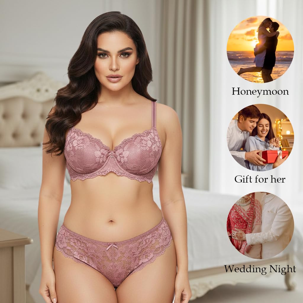 Generic Name : Set of 1 floral lace teddy strap babydoll bodysuit with matching panty set, suitable for honeymoon and wedding night occasions