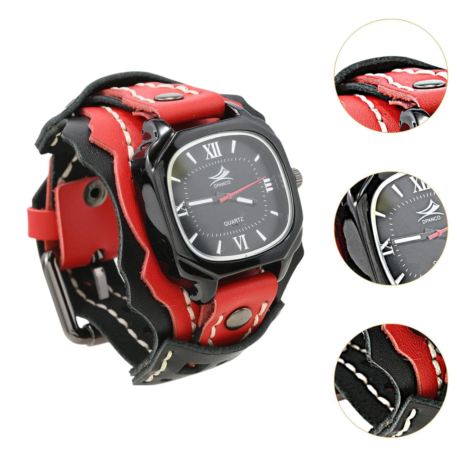 Unique Design‘: This Men’S Leather Watch Bracelet Features A Distinctive And Creative Handmade Stitching Design, Offering A Multi Layered Look That Stands Out With Its Punk Rock Design
